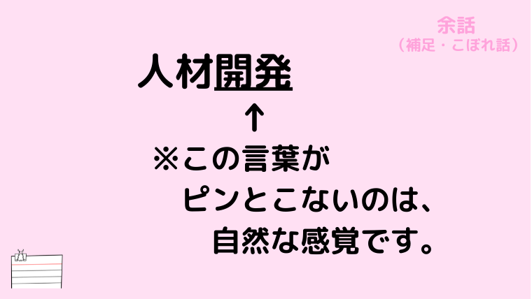 まあ、そんなことを考えても実際そうでないので、比較的よく使われている「人材開発」という言葉を採用しています。